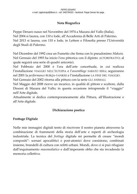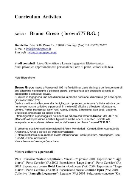 Curriculum Vitae Artistico Pittore have a degree or two and specialize in various niches. Era il 1942 dove iniziò a frequentare la prima elementare. Presentarsi bene è il primo passo per avviare un rapporto proficuo e collaborativo sia con le gallerie che con tutti gli operatori darte.