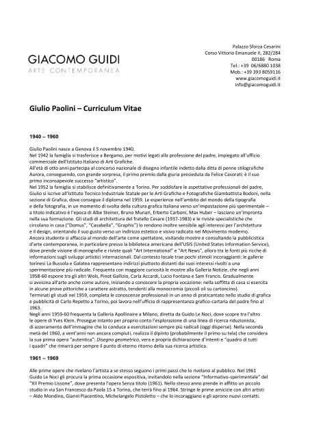 Giulio Paolini Curriculum Vitae Giacomo Guidi